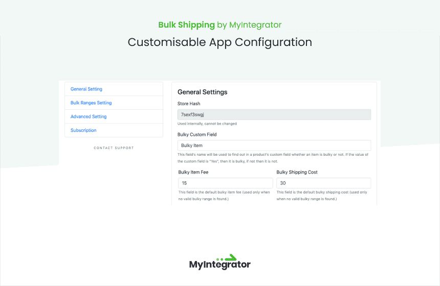 Many adjustable settings are available for customisation; change which field detects bulky items, set different values for your shipping rates and easily add, edit or delete price ranges that return different shipping rates.